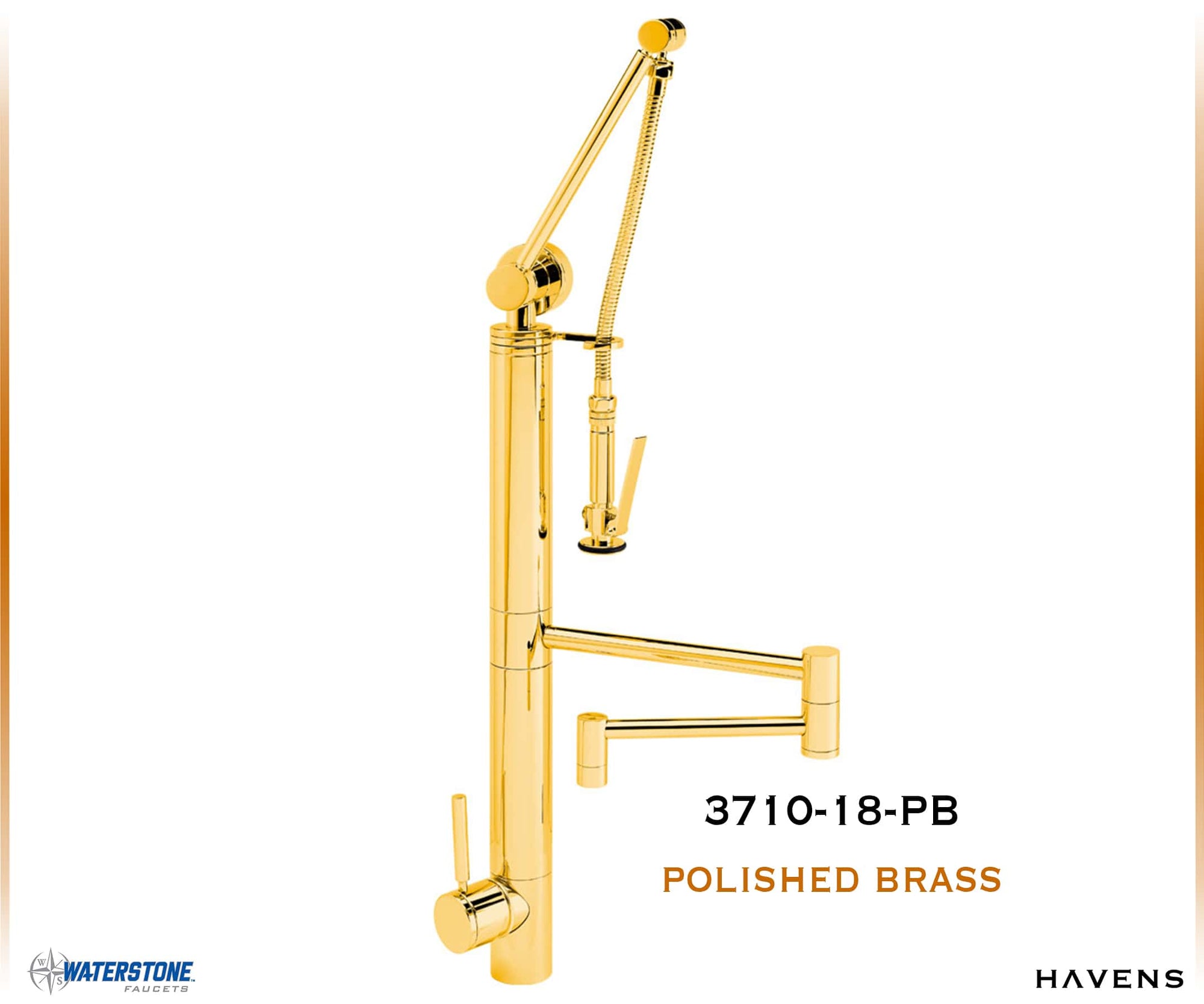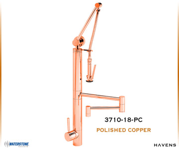 So what’s a Gantry Pulldown Faucet? That’s what your friends will ask when they see this amazing centerpiece of your kitchen. How do you explain it when there is nothing else out there like it? It is unique in both design and functionality. The Waterstone Gantry Pulldown’s patented design was modeled after the massive size and strength of Gantry cranes in U.S. harbors and shipyards. Gantry cranes do the heavy lifting when it comes to unloading cargo from ships. The faucet’s pre-rinse spray arm is spring-loaded and has a range of motion to reach every corner of your sink. The 360 degree, 18″ articulated swivel spout does the job too. Sink clean up is easy. The ergonomic sprayer handle is fully insulated against heat and swivels easily in your hand. Squeeze the sprayer’s lever and water instantly diverts from spout to spray. A hot/cold ceramic disk valve cartridge helps save water and controls the flow to a maximum of 1.75 gpm. When installing, you have the option of mounting the handle in the front, on the right or on the left. The handle can also adjust up to 22.5 degrees, right or left, for clearance from backsplash. Resistant to reverse osmosis water. Each Gantry Pulldown Faucet can be “Suited.” Add accessories that match in both finish and style. Soap/lotion dispensers, air switches or dishwasher air gaps create a professional collection of faucet features for the sink area. All Waterstone faucets are covered by a lifetime functional warranty and proudly made in the USA. This contemporary Gantry Pulldown’s modern, sleek design will definitely get them talking.